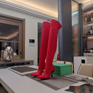 2025 Balenciaga Arch Heel Over-the-Knee Boots, Red