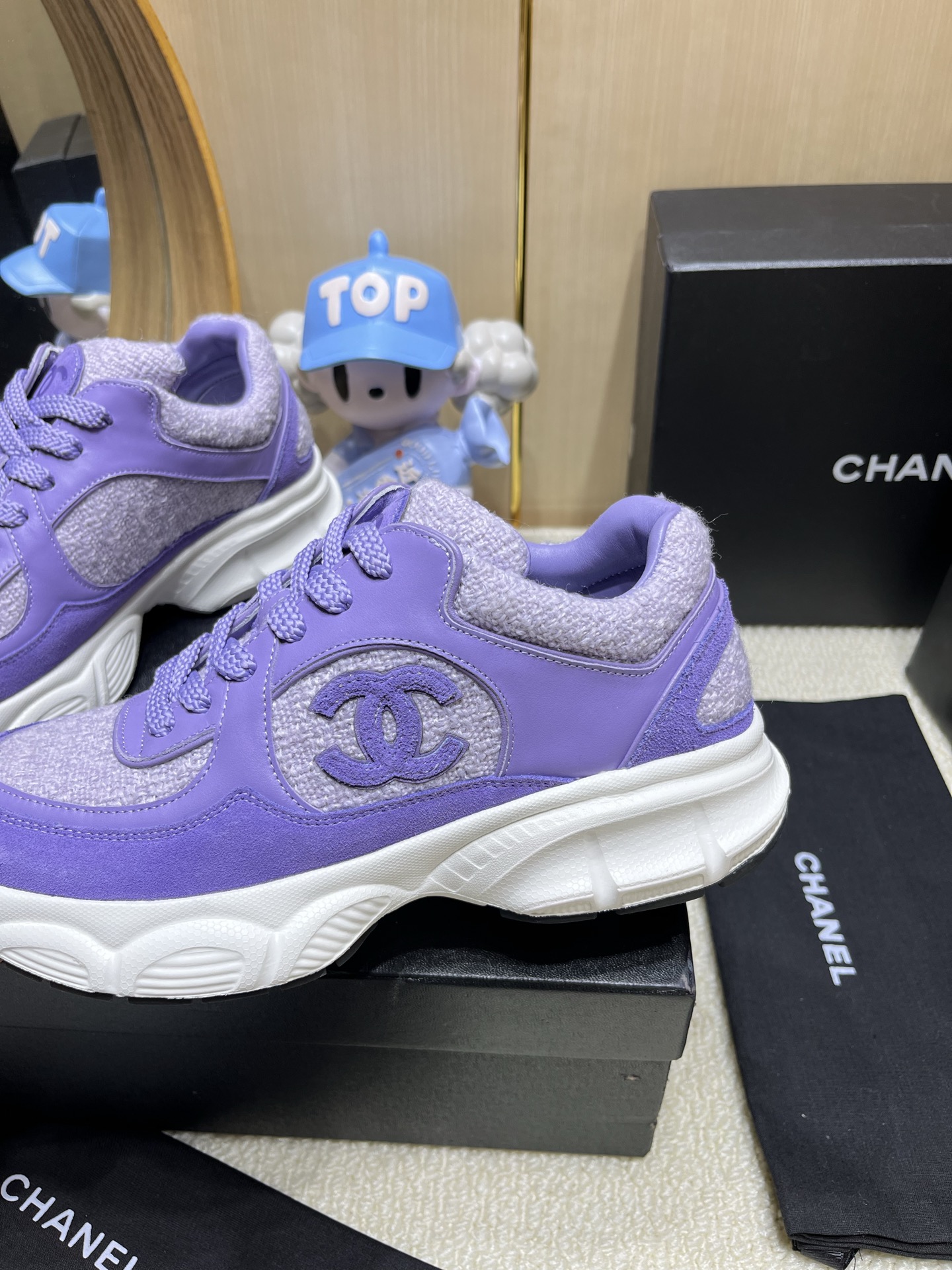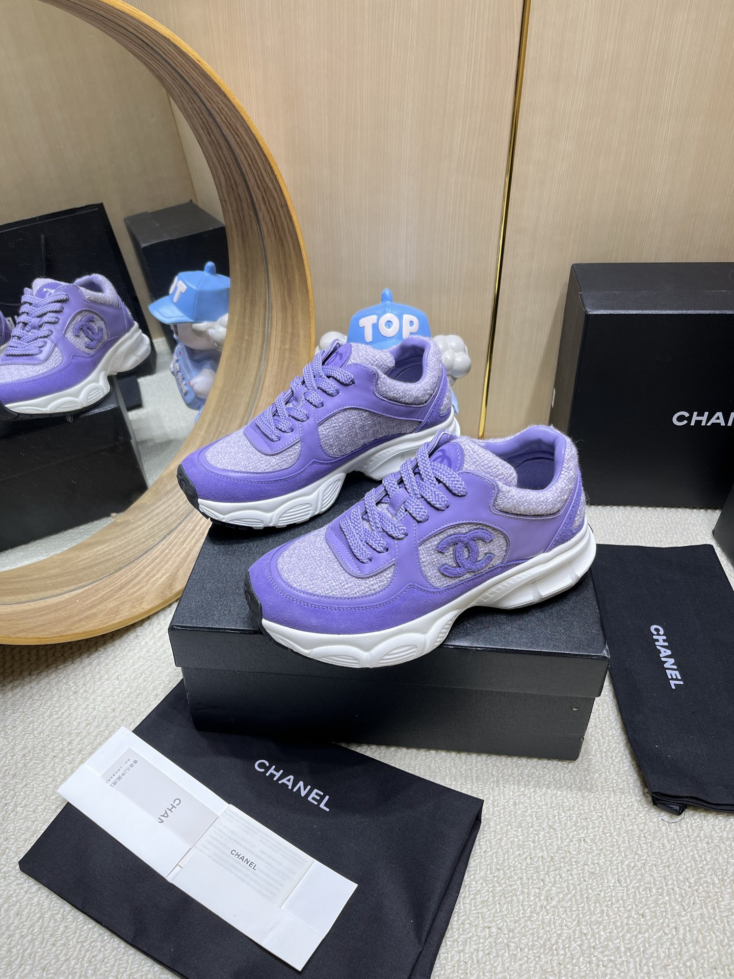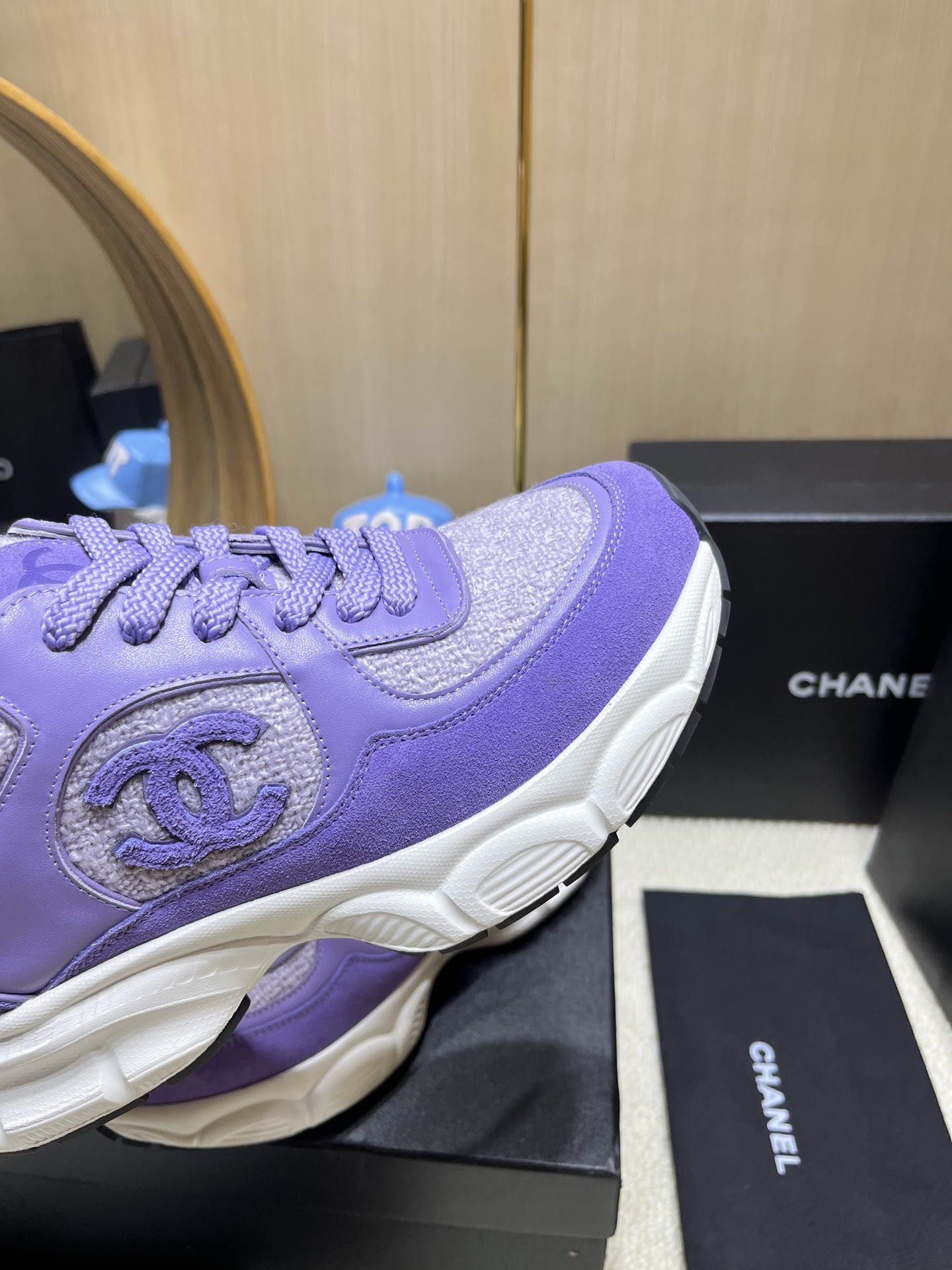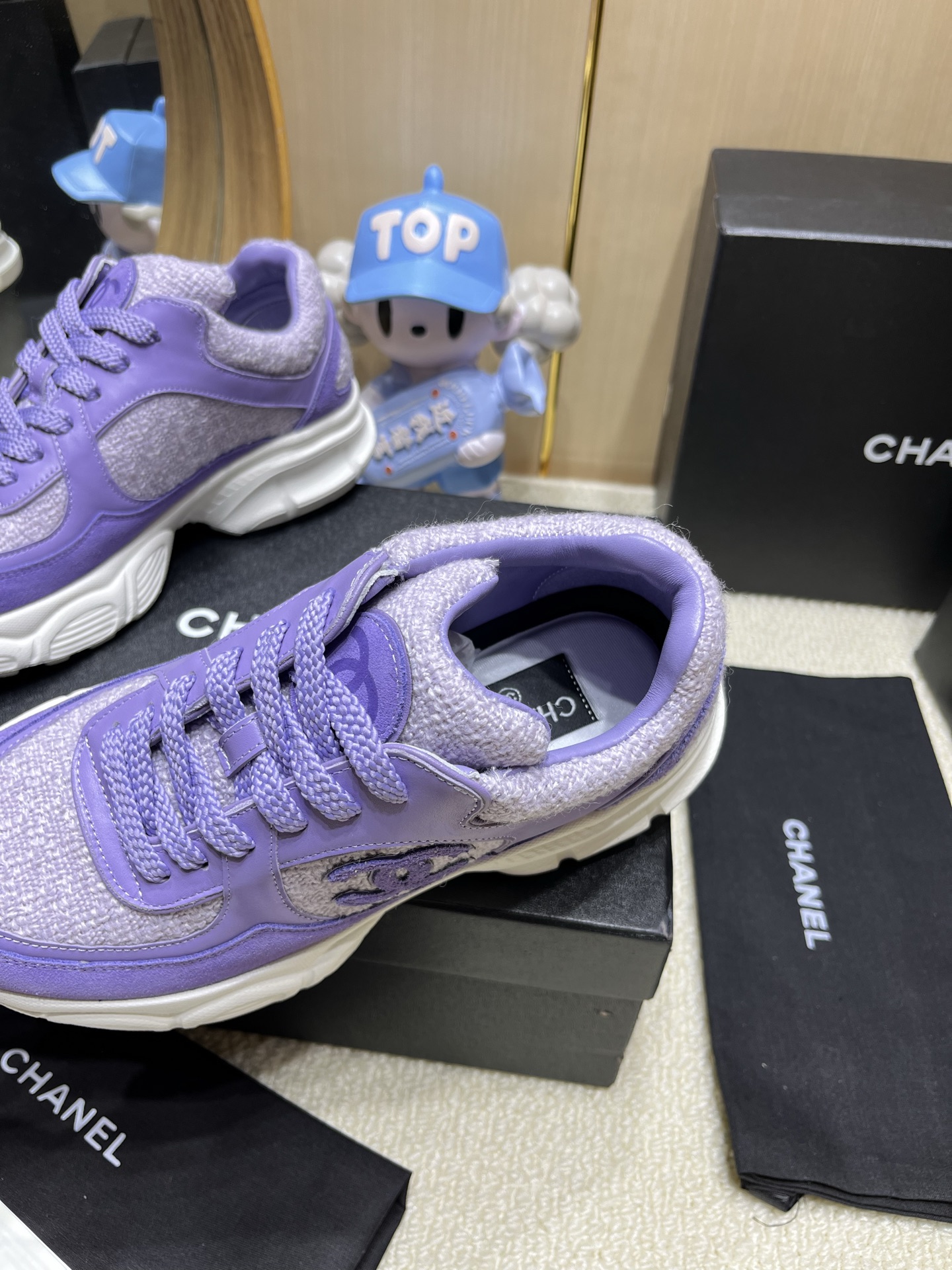 The Chanel running shoes blend comfort and style, offering an elevated sporting experience. With a design that reflects both athletic and fashion-forward elements, these shoes feature a dynamic, sporty look with an innovative, streamlined silhouette. The running shoes are crafted to keep up with your active lifestyle throughout the year, ensuring maximum comfort with every step.