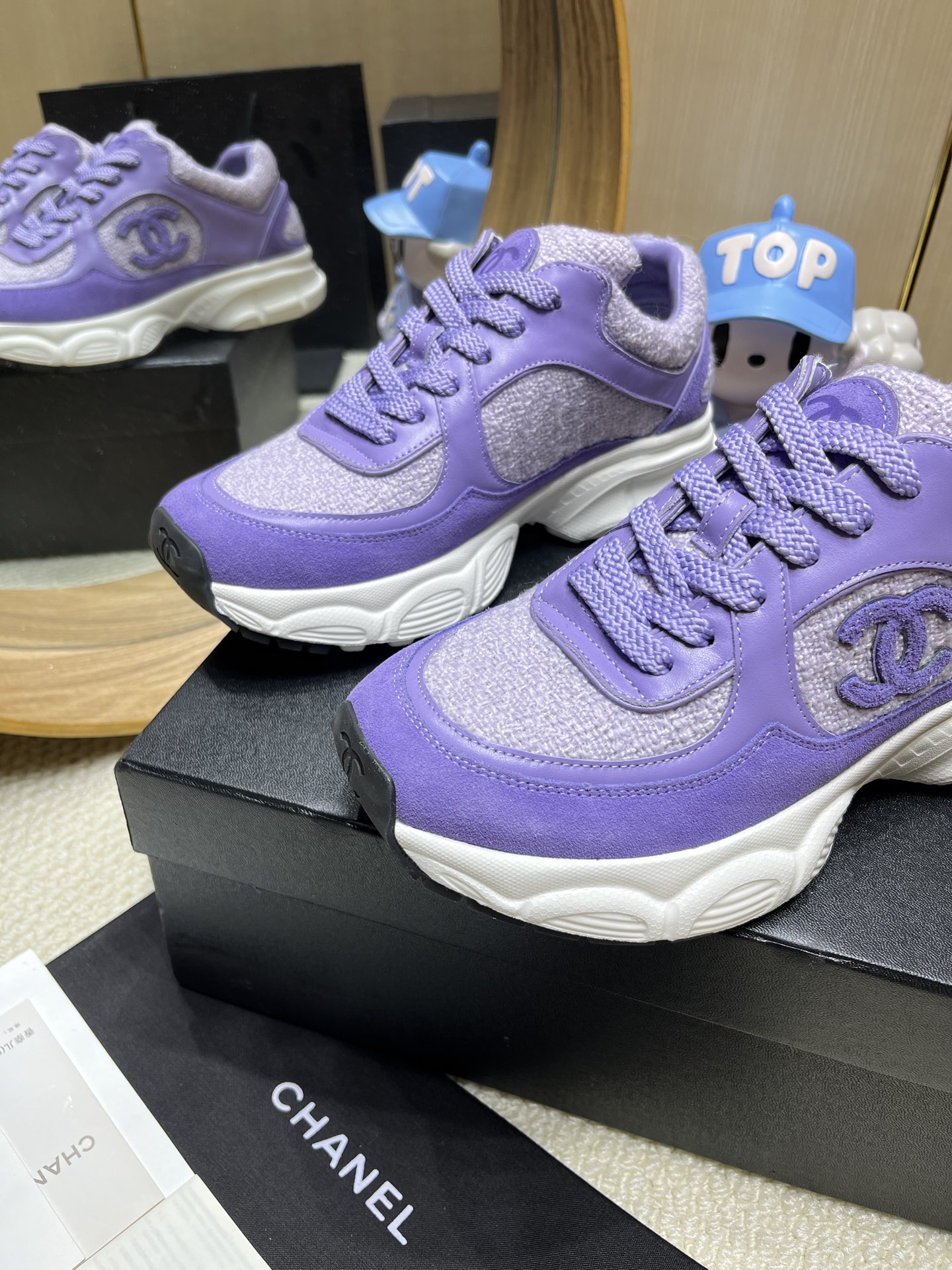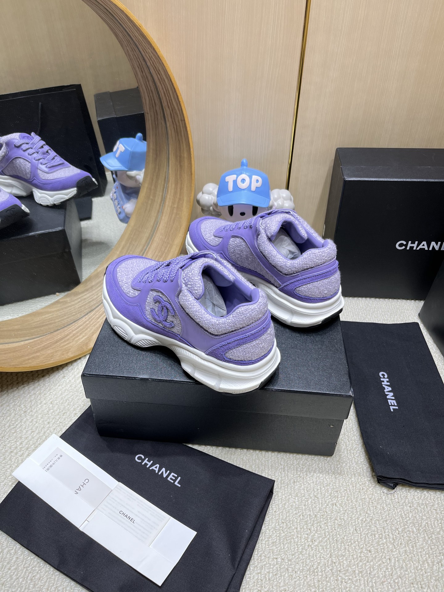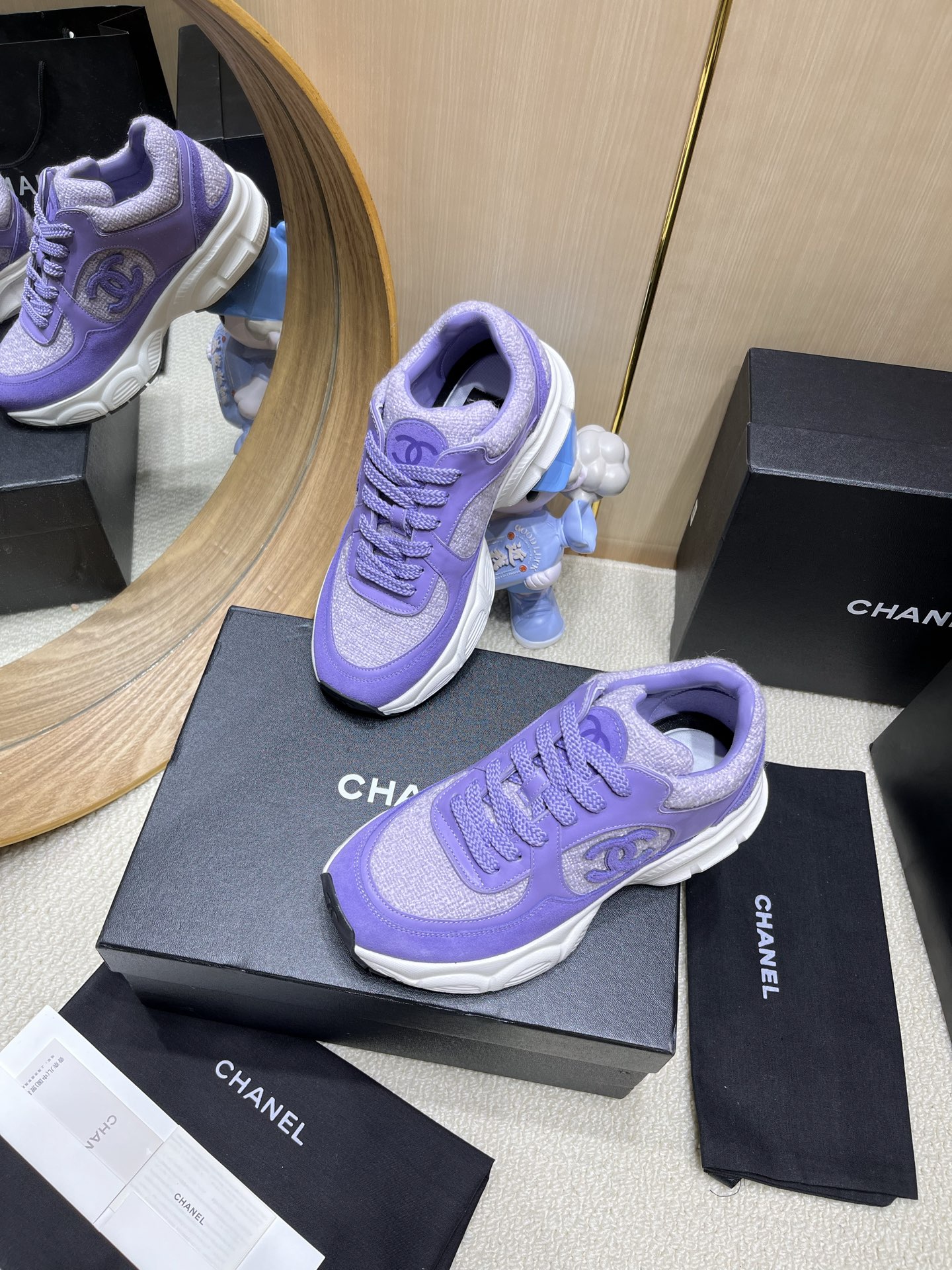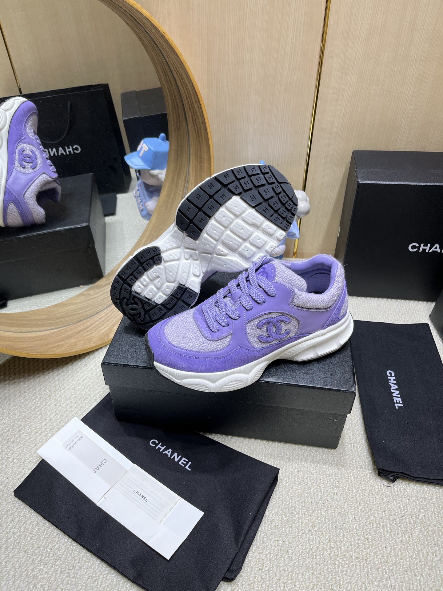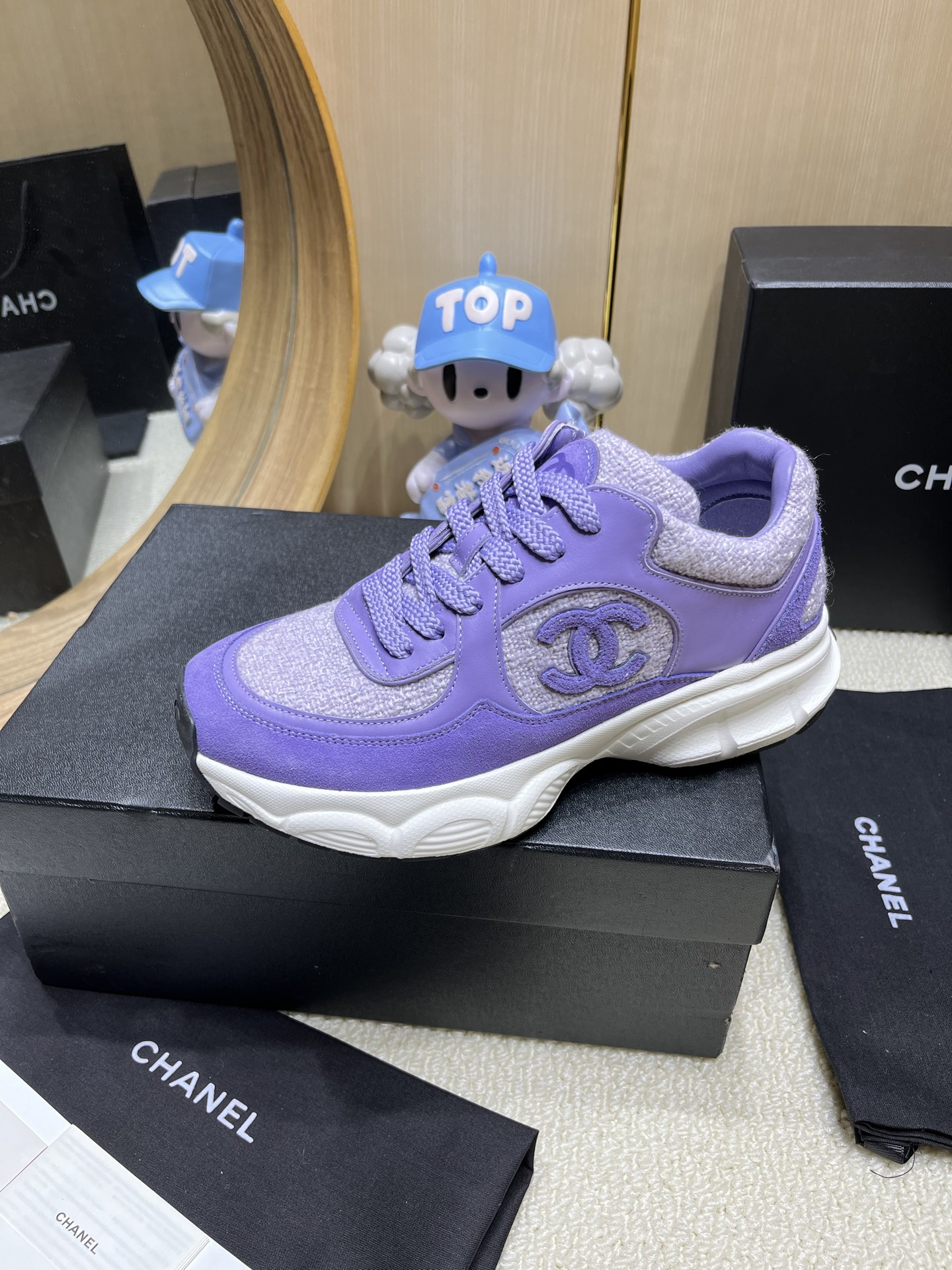 The Chanel running shoes blend comfort and style, offering an elevated sporting experience. With a design that reflects both athletic and fashion-forward elements, these shoes feature a dynamic, sporty look with an innovative, streamlined silhouette. The running shoes are crafted to keep up with your active lifestyle throughout the year, ensuring maximum comfort with every step.