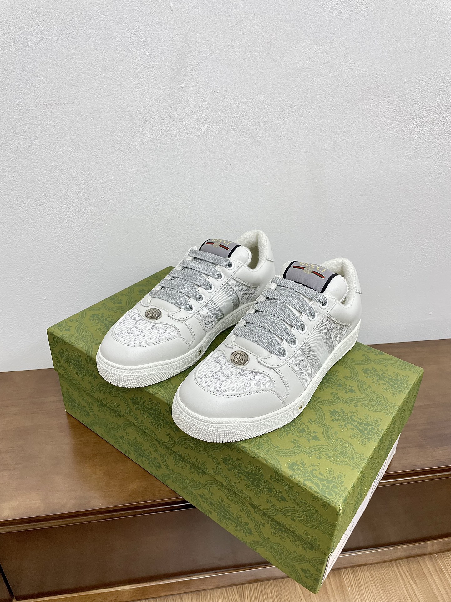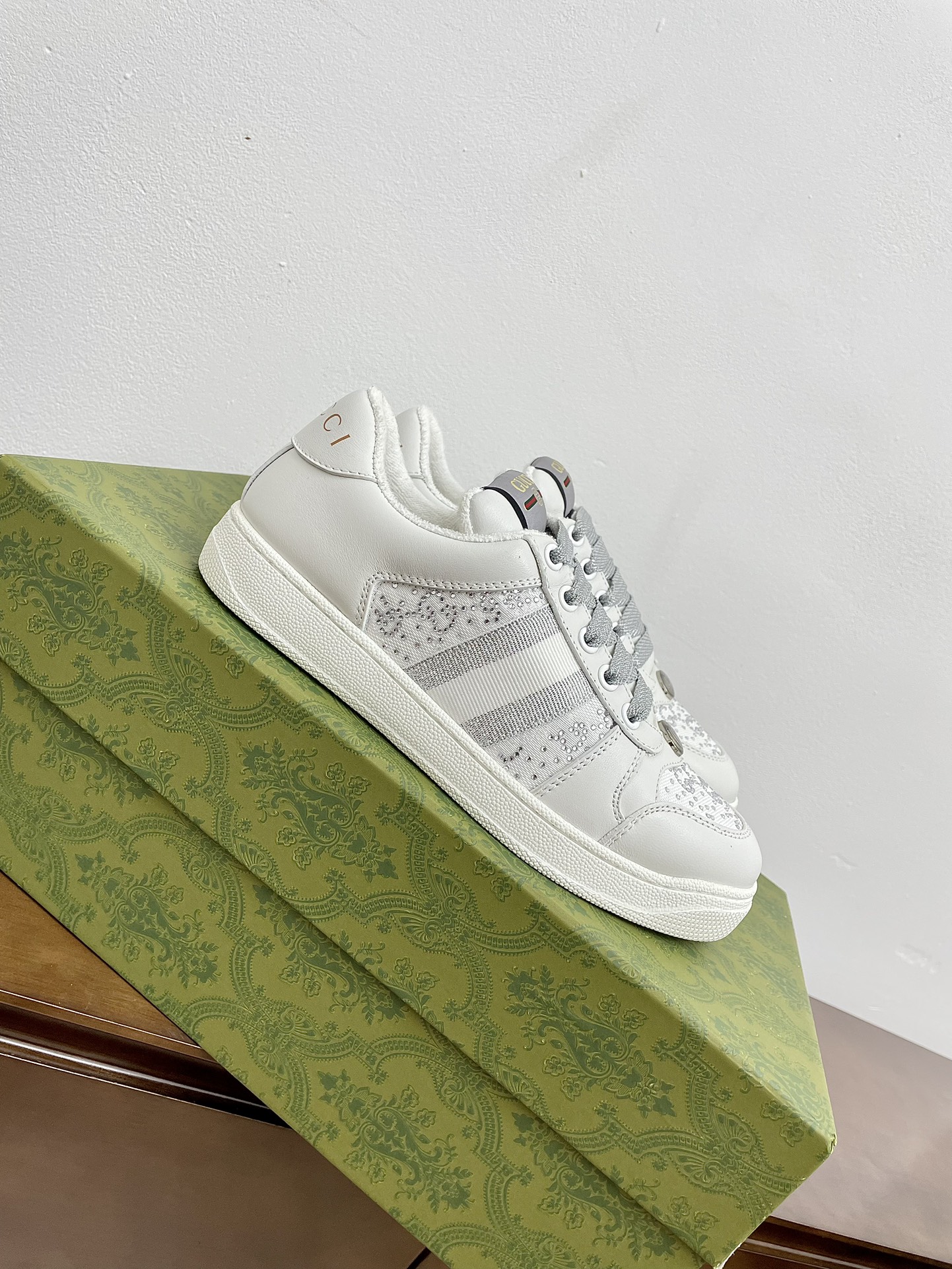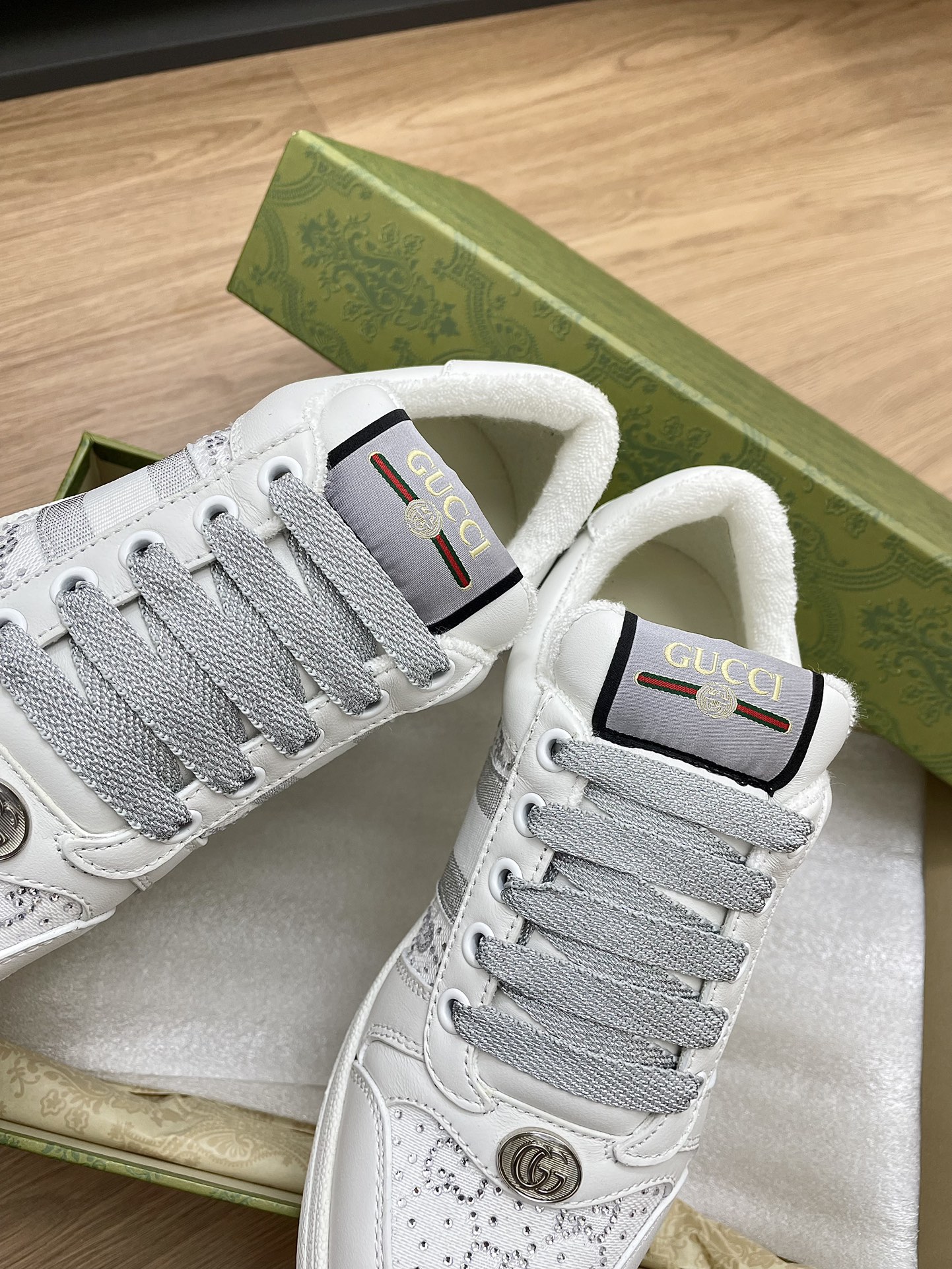 Gucci-Inspired 24 Silver Sneakers – Retro Elegance with a Modern Edge