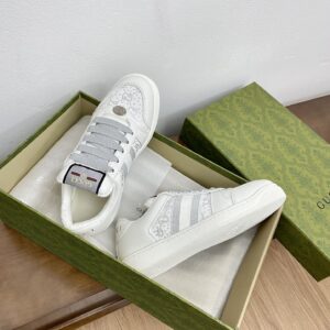 Discover the perfect fusion of vintage aesthetics and contemporary comfort with the Gucci-inspired 24 Silver Sneakers. Designed for fashion-forward individuals, this sneaker embodies effortless sophistication with a touch of old-school athletic charm.