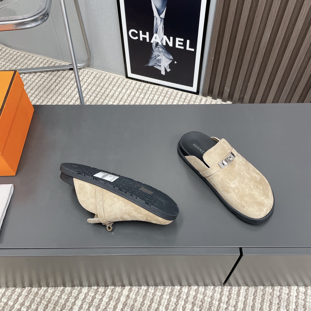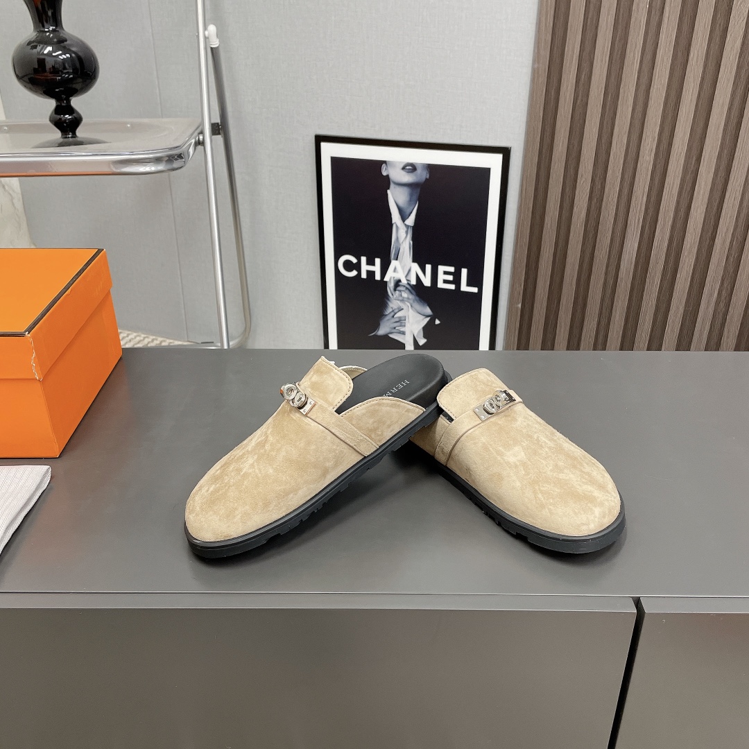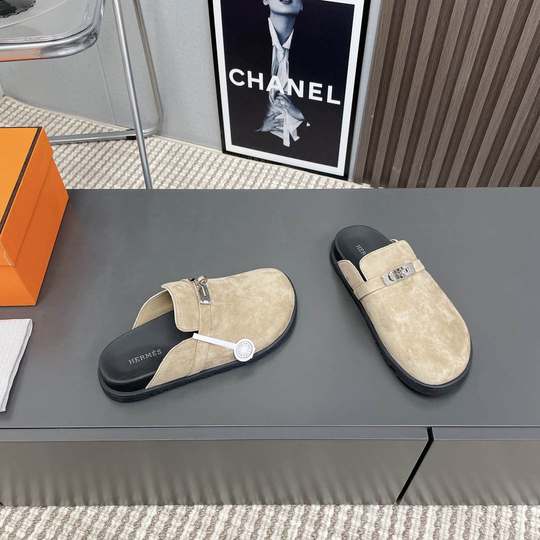 2025 HERMES Loafer Slippers Leather Surface, Light Khaki