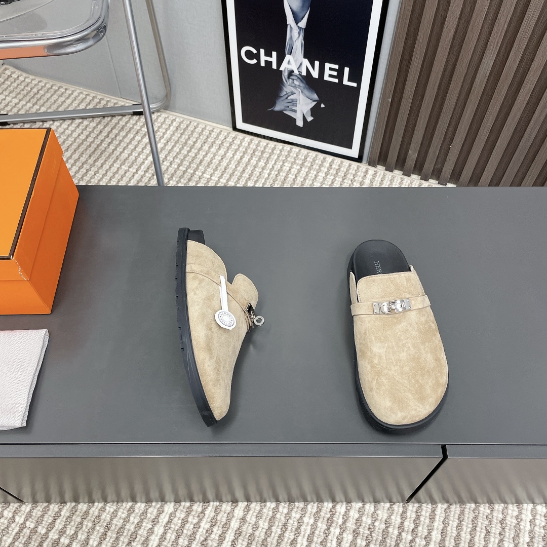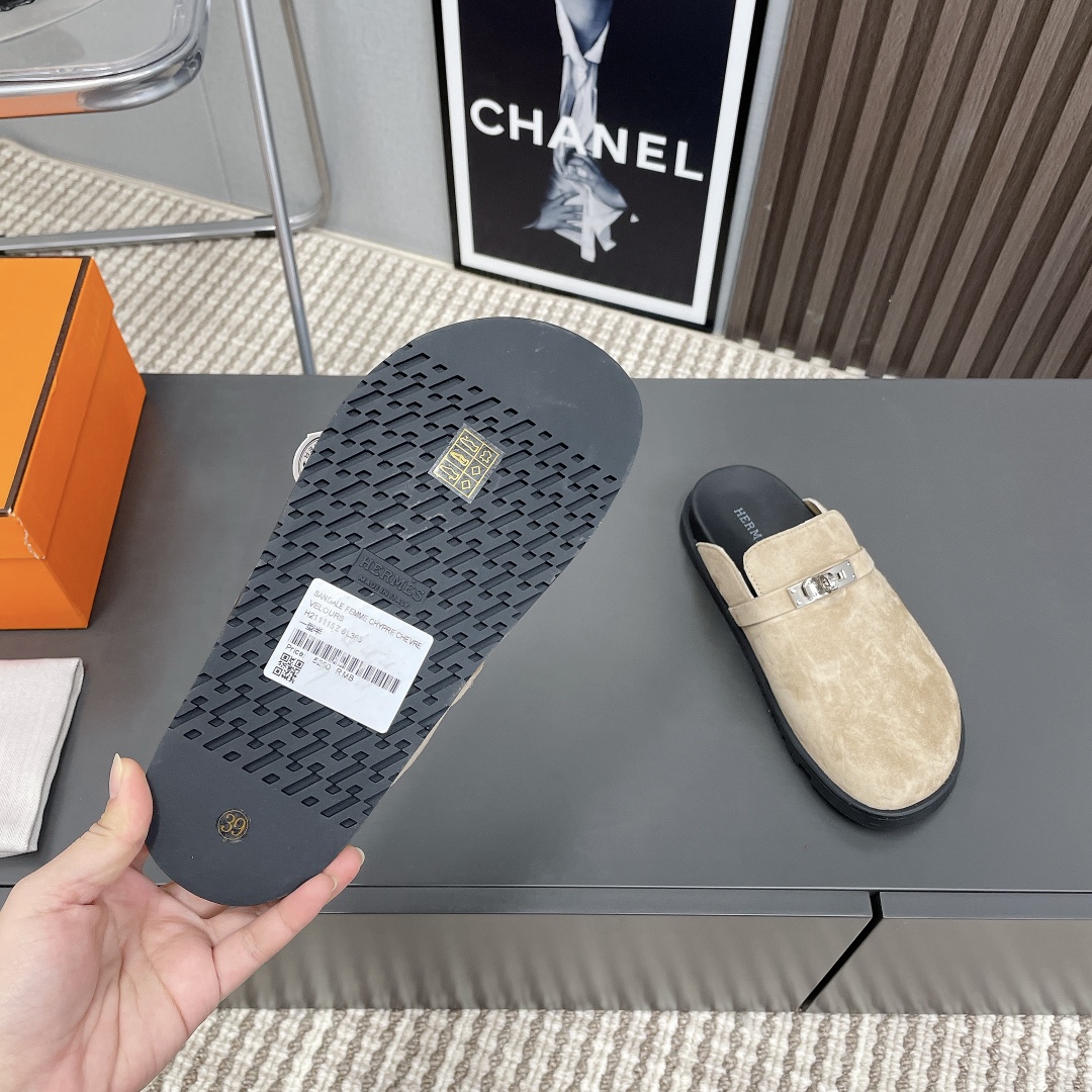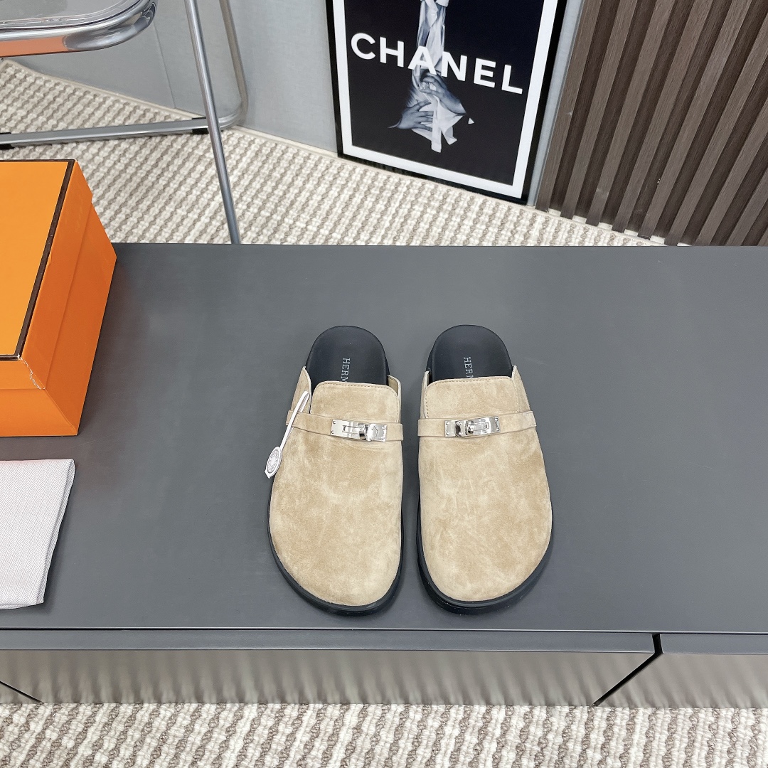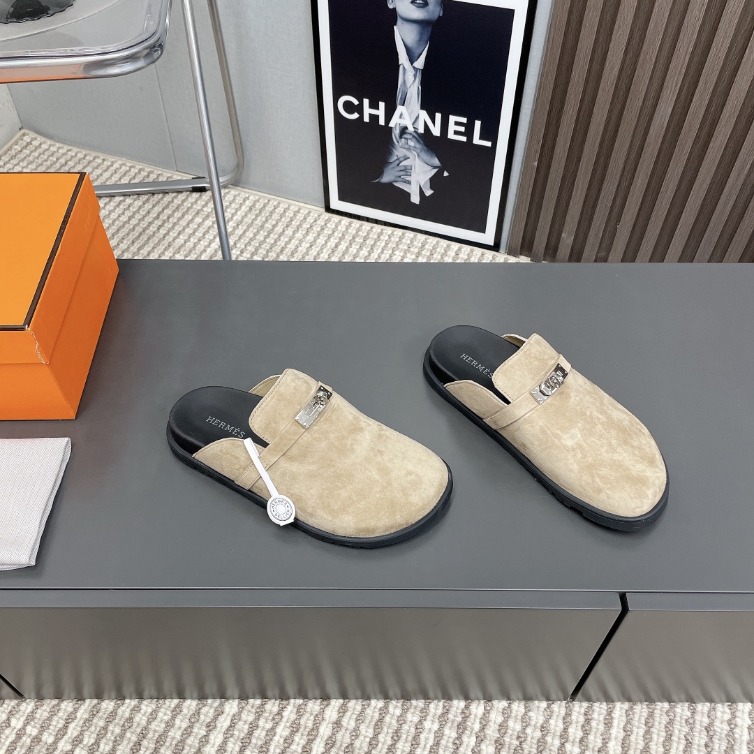 2025 HERMES Loafer Slippers Leather Surface, Light Khaki