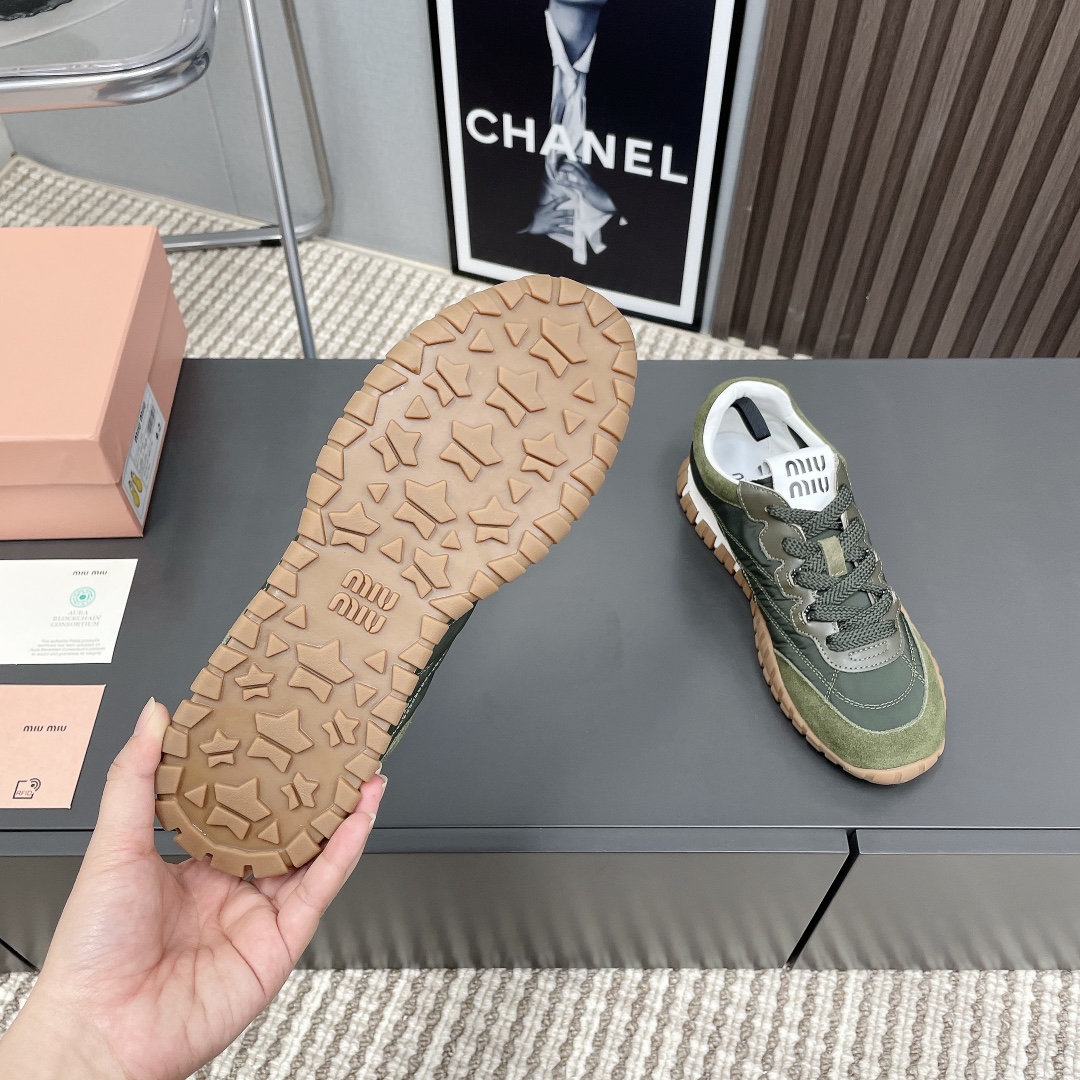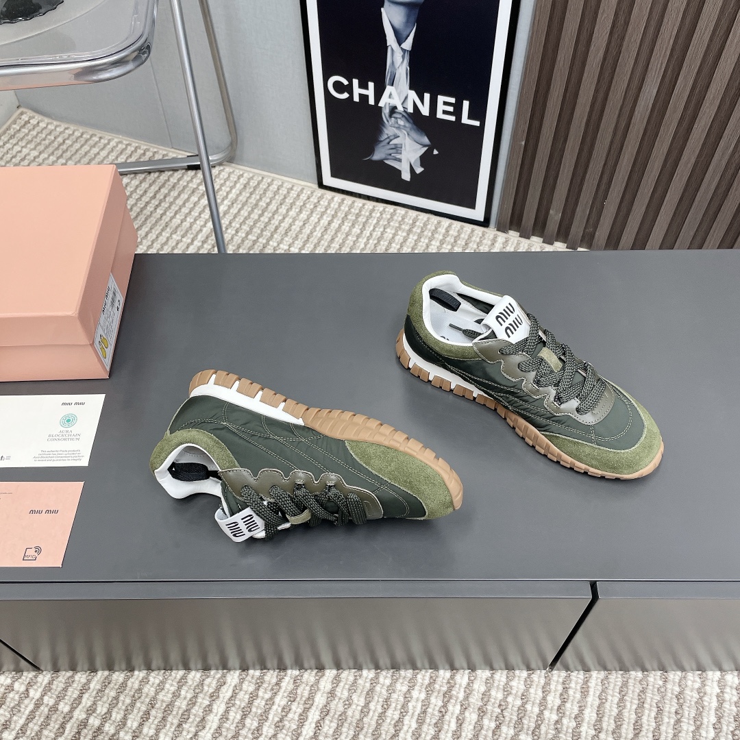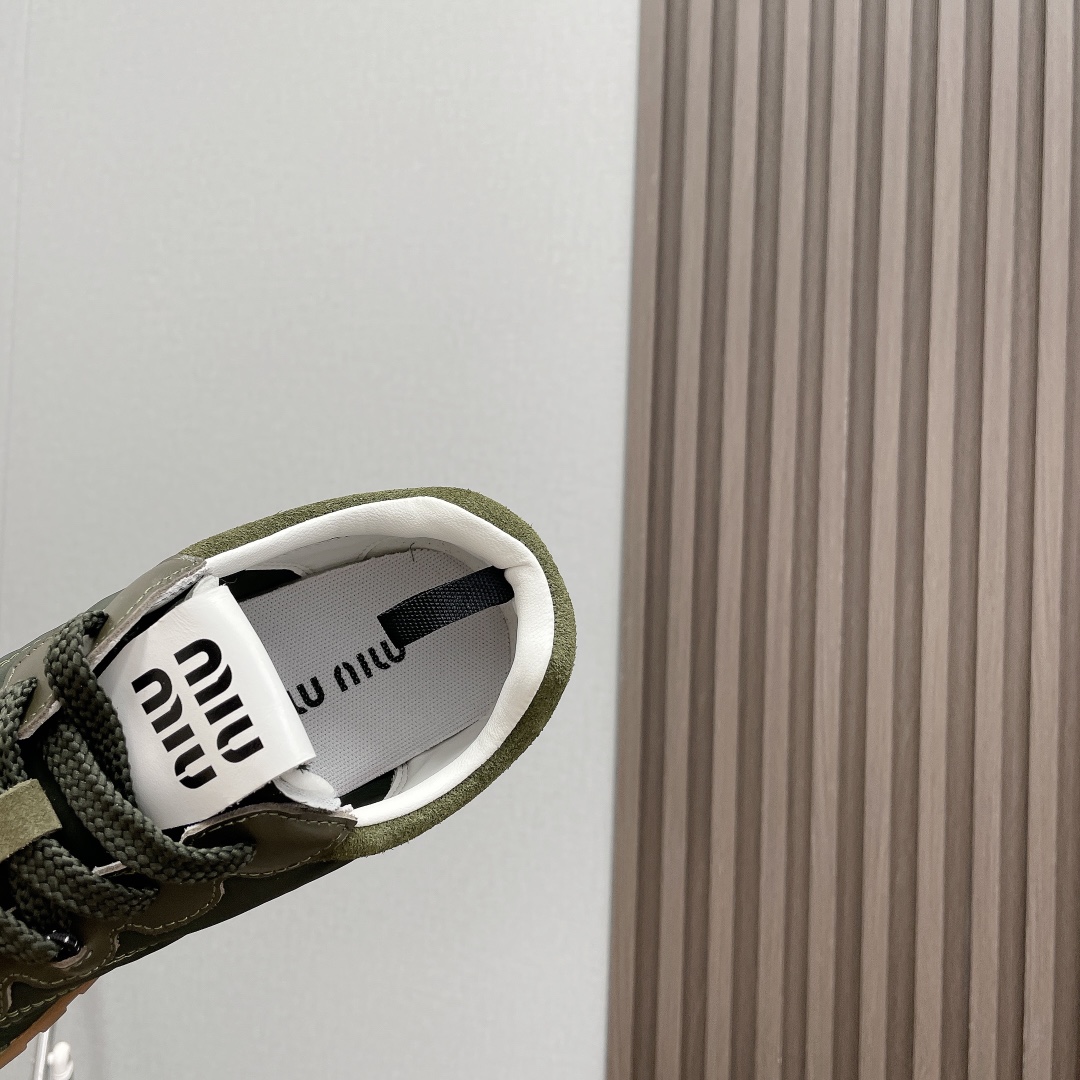 2025 MiuMiu Bold Strap Platform Sneakers, Green