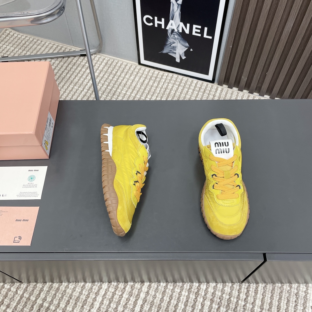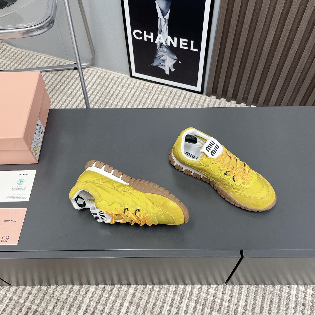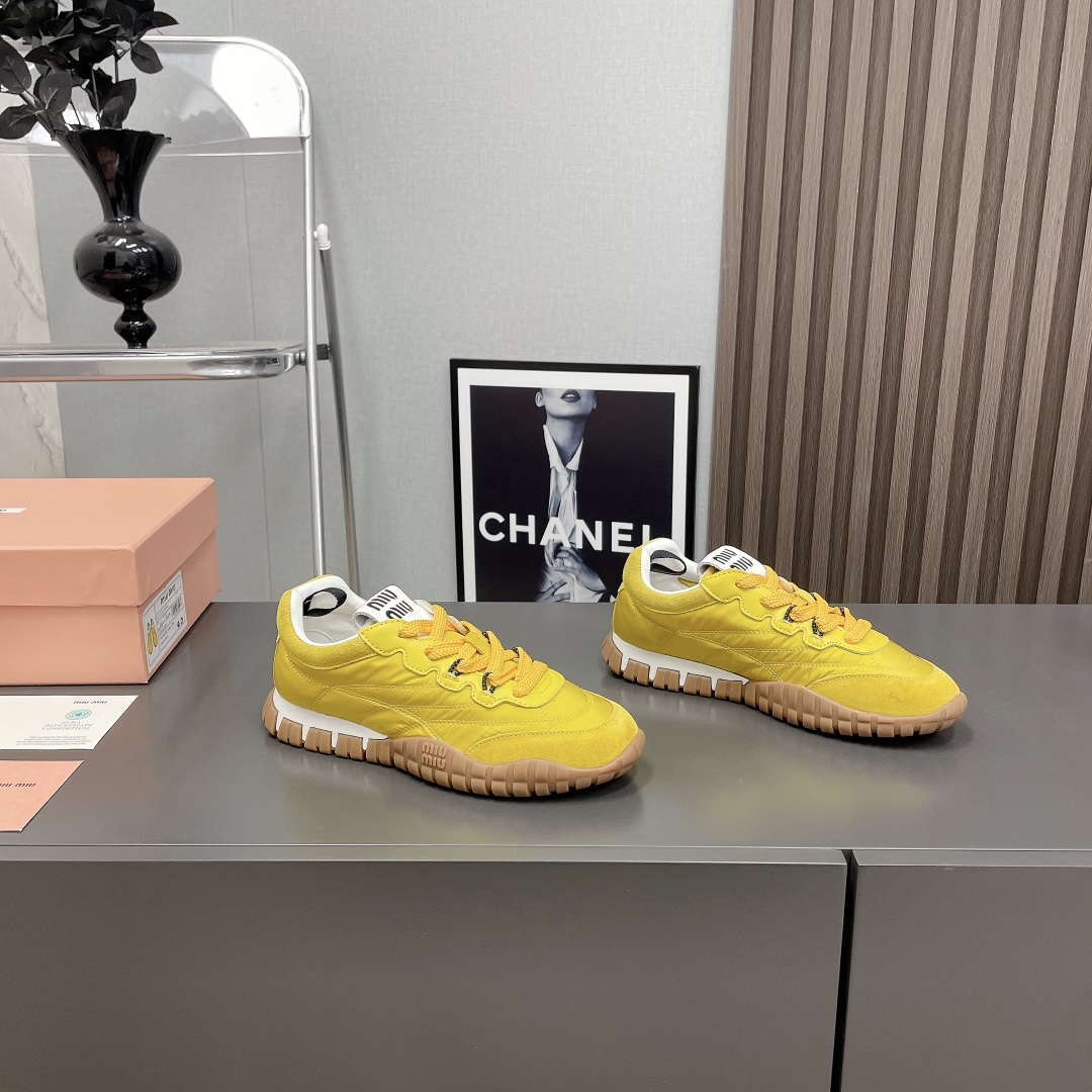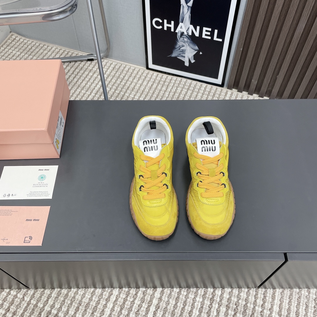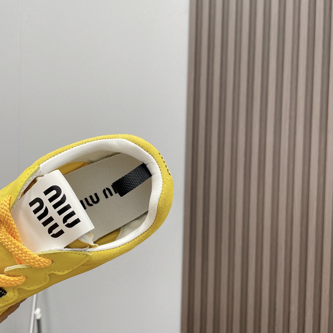 2025 MiuMiu Bold Strap Platform Sneakers, Yellow