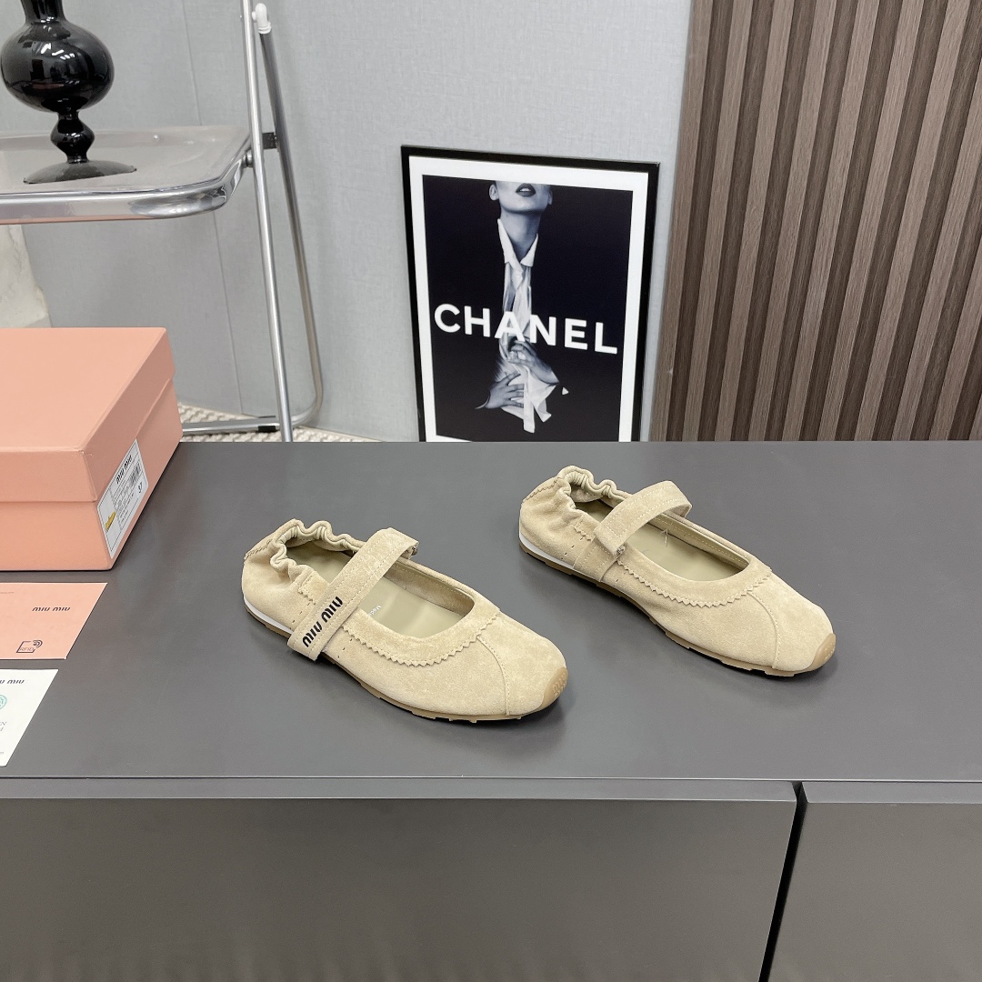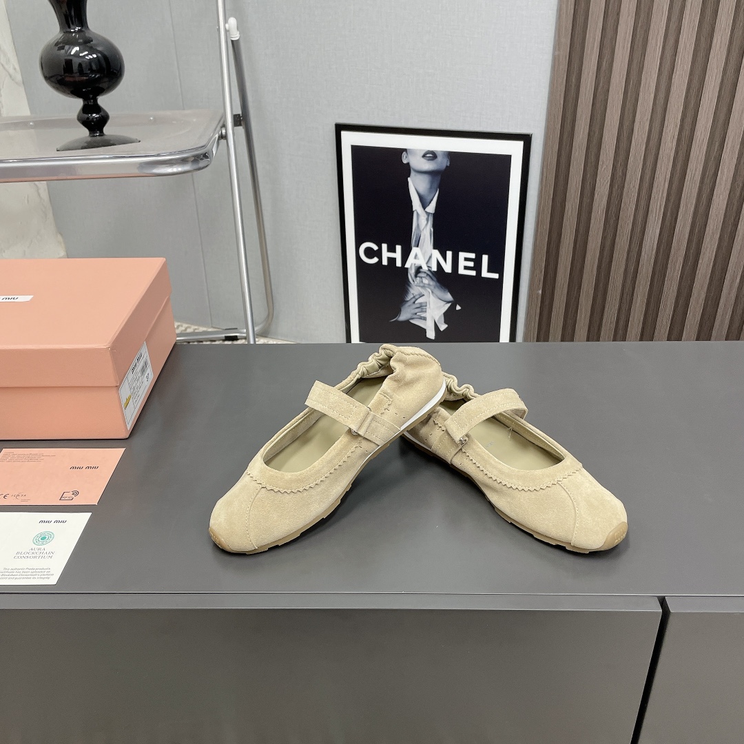 2025 Miumiu Classic Mary Jane Shoes, Apricot