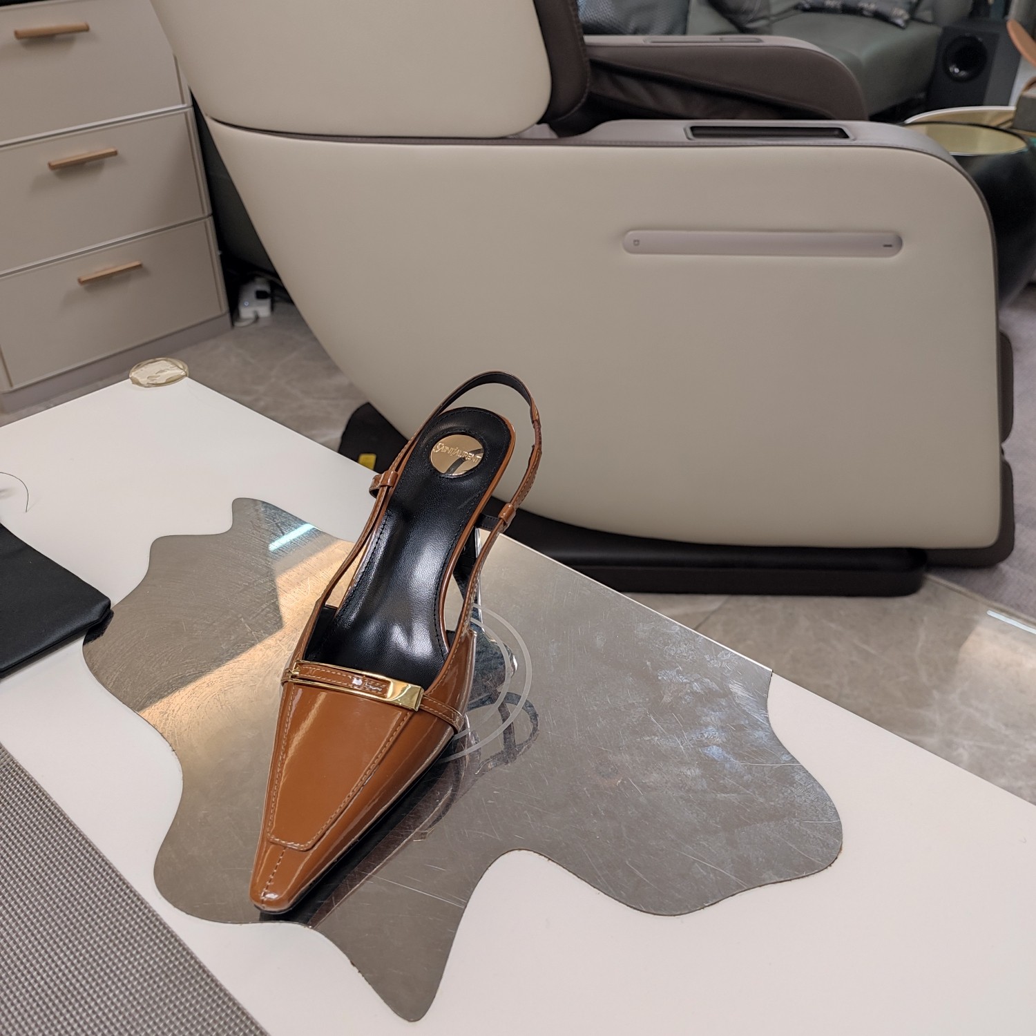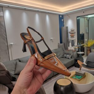 Step into sophistication with our luxurious pointed-toe ankle strap sandals, designed to complement any high-fashion wardrobe. Featuring a sleek patent leather upper and a plush lambskin insole, these heels offer the perfect balance of elegance and comfort.